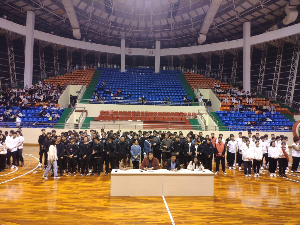为庆祝建党100周年,永利集团304am登录“红歌嘹亮颂党恩”合唱比赛初赛于3月30日晚七点在体育馆篮球厅举行。出席本次活动的有永利集团304am登录副处级辅导员柴九昌,院团委老师程俊辉、赖梦玥、龙慧杰以及各班级、社团参赛队伍500余人。