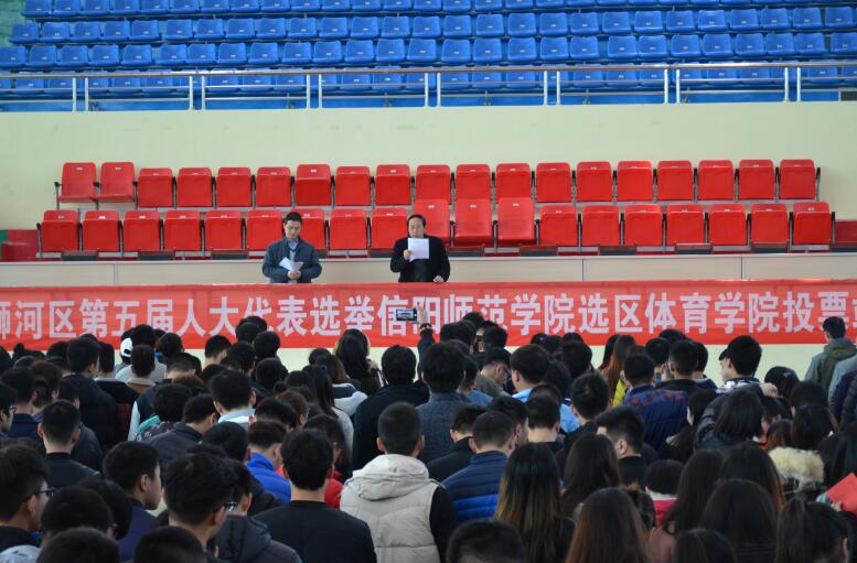 2月24日下午,浉河区第五届人大代表选举信阳师范学院选区永利集团304am登录投票站在体育馆主馆召开投票选举。