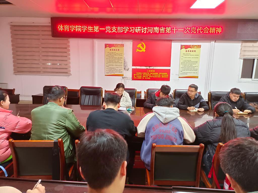 11月17日,永利集团304am登录第一党支部学习河南省第十一次党代会精神研讨会在院三楼会议室召开,学生第一党支部全体党员参加会议,会议由党支部书记龙慧杰主持。