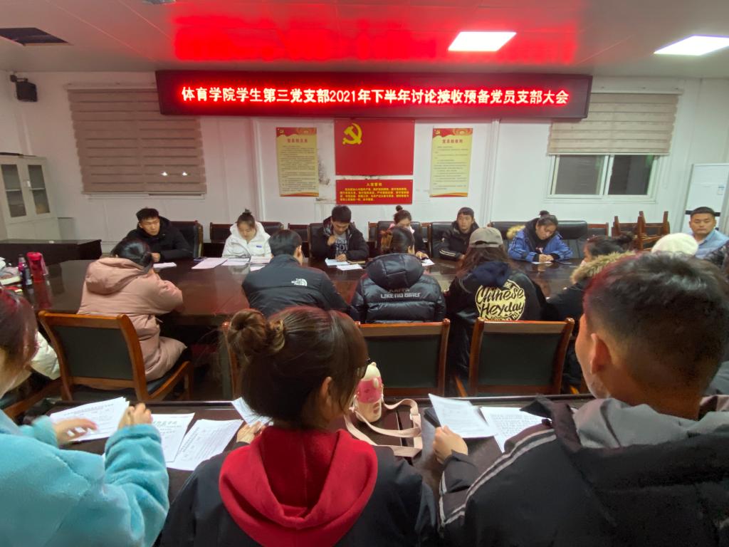 12月2日晚,永利集团304am登录学生第三党支部成员于体育楼3楼会议室召开讨论接收预备党员支部大会。会议由学生第三党支部书记程俊辉同志主持,支部全体党员以及本次发展对象参加本次会议。
