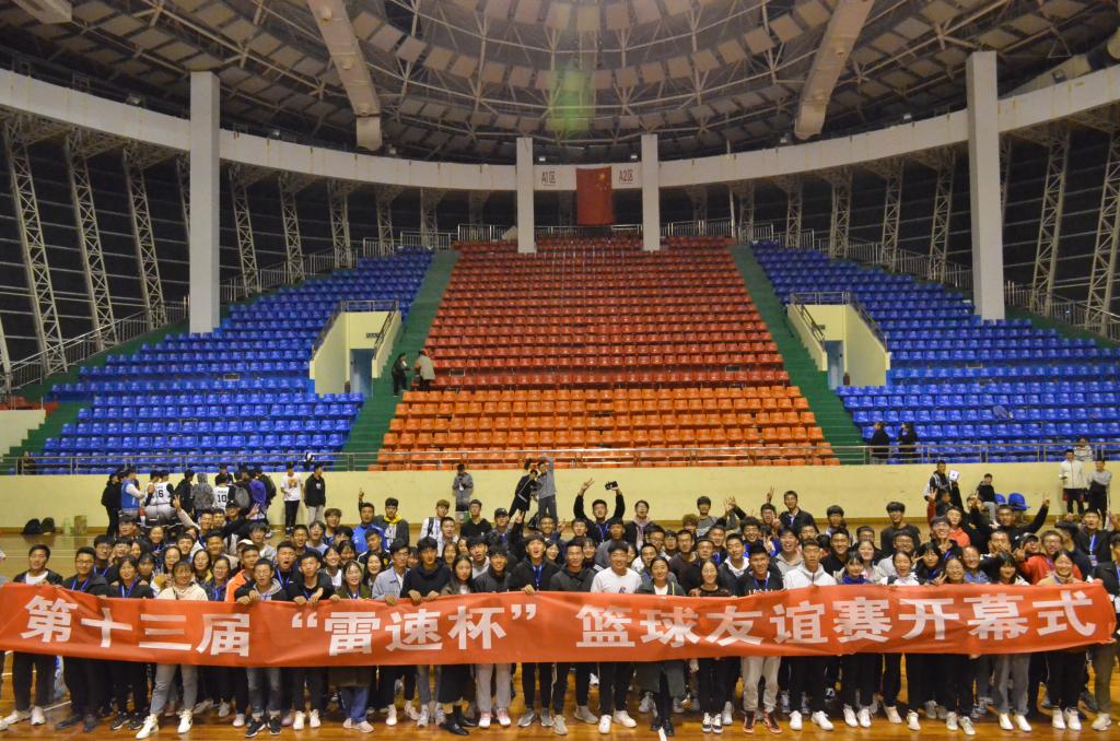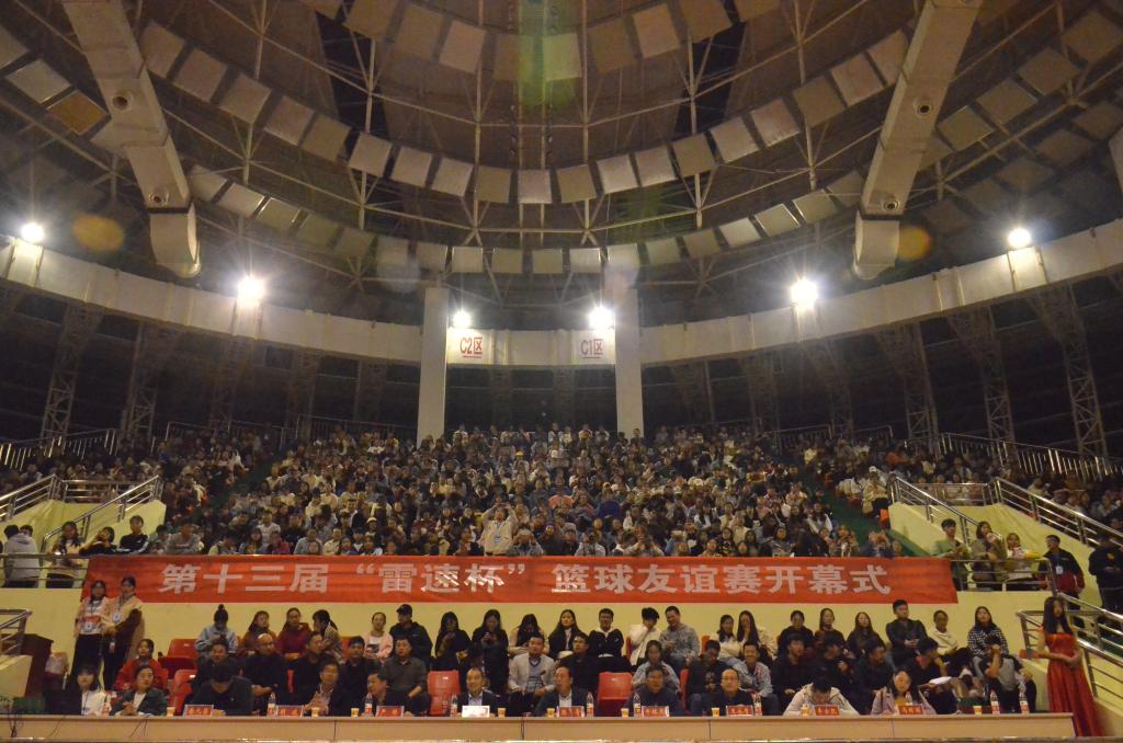 2019年11月14日晚上7点由永利集团304am登录举办的第十三届“雷速杯”篮球友谊赛开幕式在信阳师范学院体育馆二楼隆重举行。出席本次篮球赛开幕式的领导老师有信阳师范学院校团委书记王建旭、校学生处副处长严彬、永利集团304am登录党委书记陈青、传媒学院党委副书记胡波、商学院党委副书记王永贵、永利集团304am登录副院长牛林杰、 永利集团304am登录副处级辅导员柴九昌、雷速杯篮球赛主裁判丰士凯老师以及本次活动冠名赞助商雷速体育总经理冯丽丽以及各学院团委书记、老师、代表队及两千余名篮球爱好者。