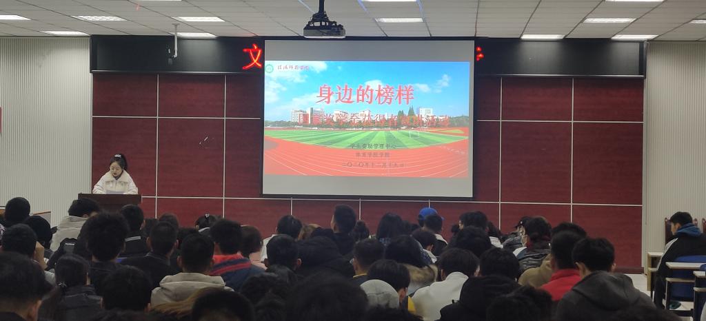 12月19日,由学工处资助管理中心主办,我院承办的“身边的榜样”宣讲会在体育馆多媒体教室成功举办。我院资助专员、辅导员赖梦玥老师与大一大二全体学生共同聆听本次宣讲会,宣讲会由赖梦玥老师主持。