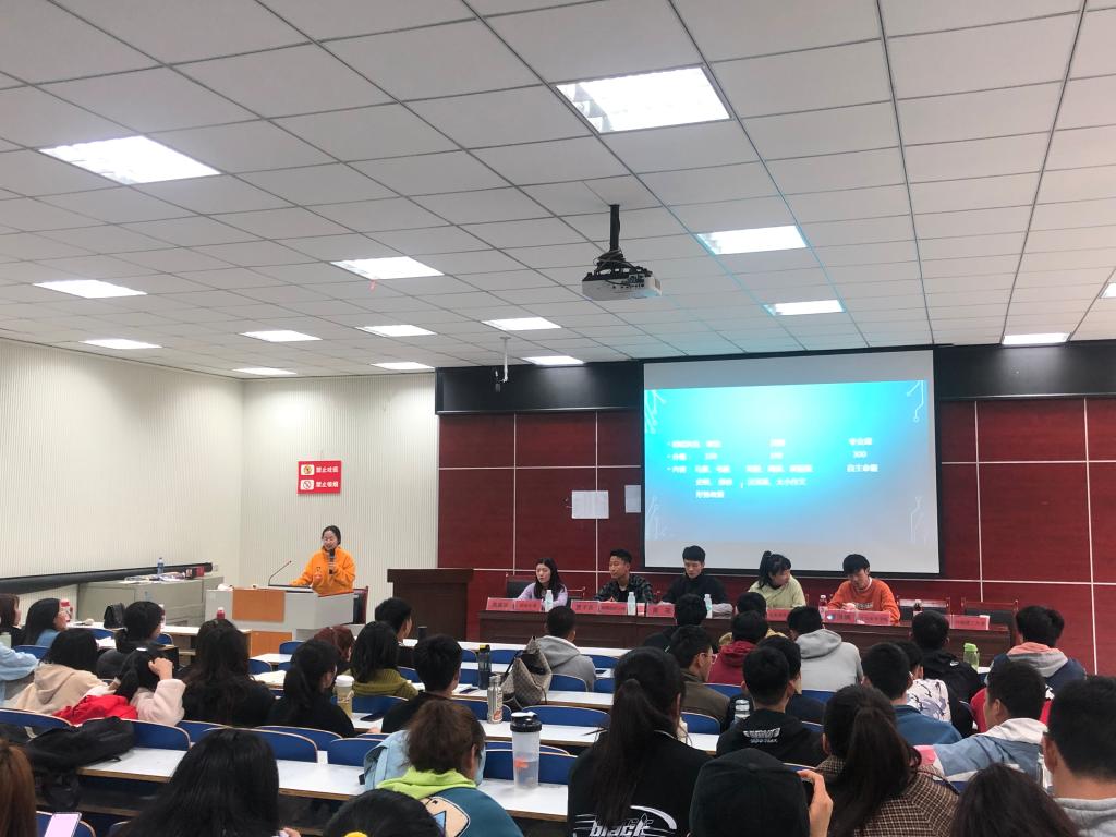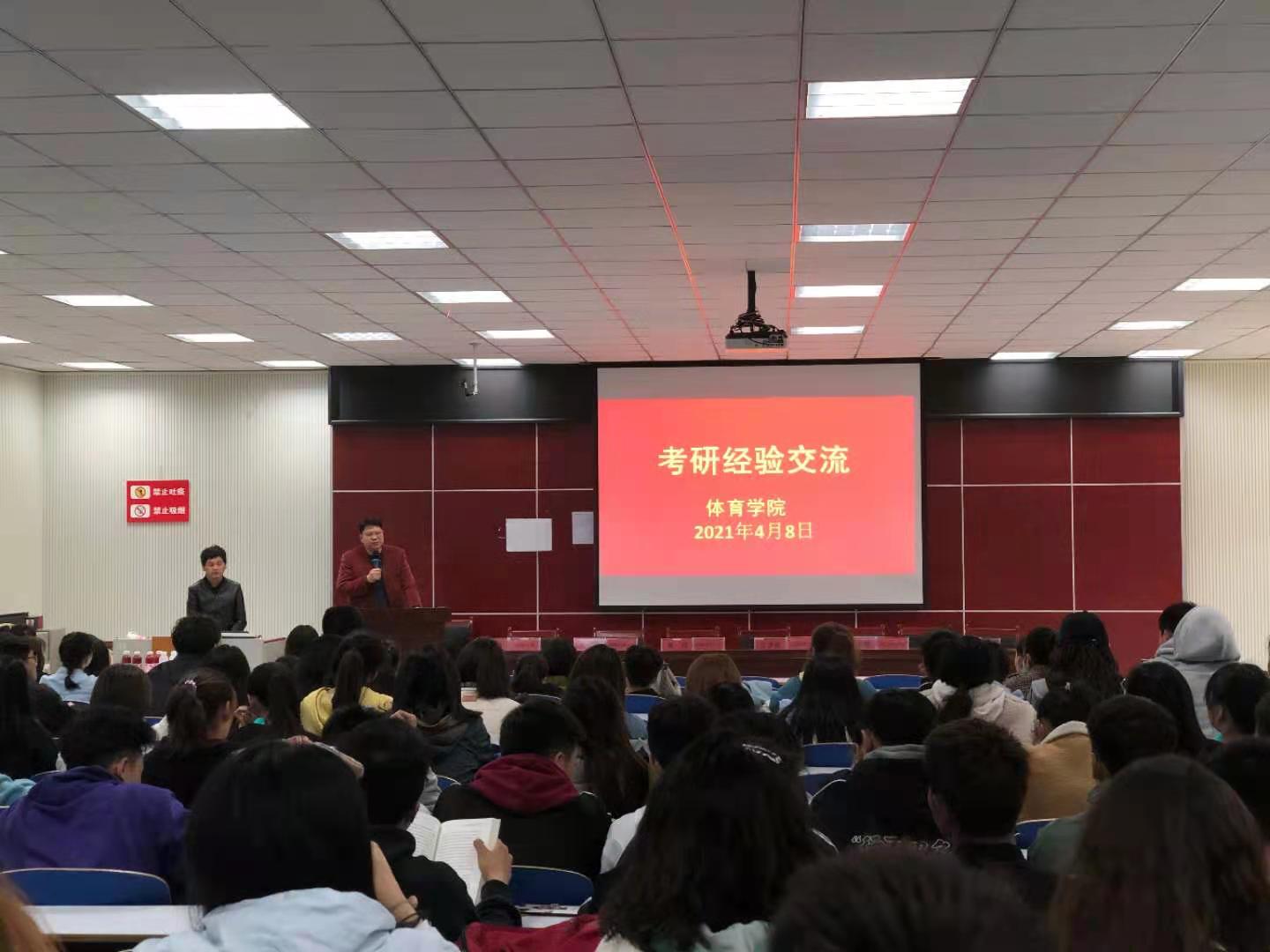 4月1日下午,我院在体育馆多媒体教室召开考研动员大会暨考研经验交流会,副处级辅导员柴九昌、18级辅导员程俊辉,考上研究生学生代表贾子良、黄硕、袁洪钢、高佩珍、任梦瑶、张玉静及2018级全体学生参加会议。