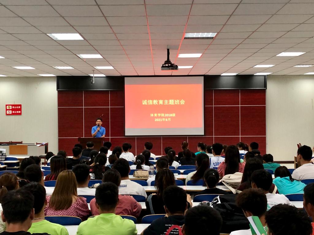 2021年6月21日晚,永利集团304am登录2018级全体学生于体育馆多媒体教室开展了“诚信教育”主题班会,班会由2018级辅导员程俊辉主持,旨在进一步培养大学生的诚信品质,提高诚信意识,全面提高大学生的思想道德素质,引导学生树立诚信理念,践行社会主义核心价值观,促使学生养成“诚信待人、诚信处事、诚信学习、诚信立身、诚信考试”的良好习惯,大力弘扬诚信文化,切实提升学生的诚信品质、自律意识和社会责任感。