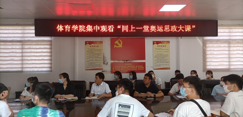 为深入贯彻落实习近平总书记关于深化思想政治理论课改革创新和“大思政课”的重要指示批示精神,为引导信阳师范学院体院学子传承和弘扬奥运健儿拼搏奋斗的精神,9月25日下午2时,永利集团304am登录党委书记张晓峰、党委副书记柴九昌、团委老师程俊辉、19级辅导员赖梦玥、20级辅导员龙慧杰和体院学生代表在永利集团304am登录会议室集中观看“同上一堂奥运思政大课”。