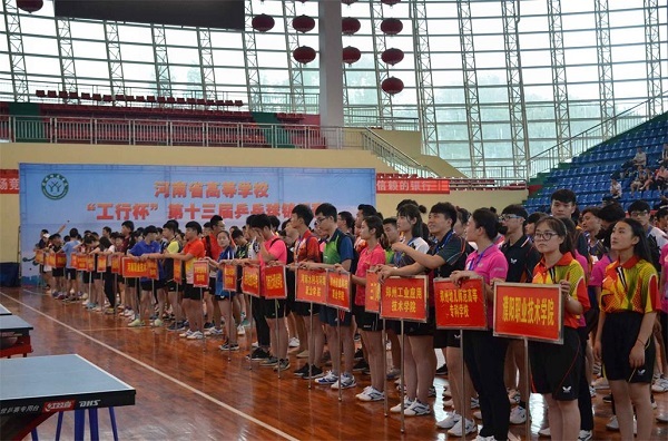 5月30日上午,河南省高等学校“工行杯”第十三届乒乓球锦标赛在永利官网体育馆开幕。此次比赛由河南省教育厅主办,河南省学生体育总会乒乓球协会、信阳师范学院共同承办,河南省学生体育总会高校分会、河南省乒乓球协会、工商银行信阳分行协办。比赛分为校长组,本科甲组、乙组、丙组和专科甲组、乙组,设有男团、女团、男单、女单、男双、女双6个大项。