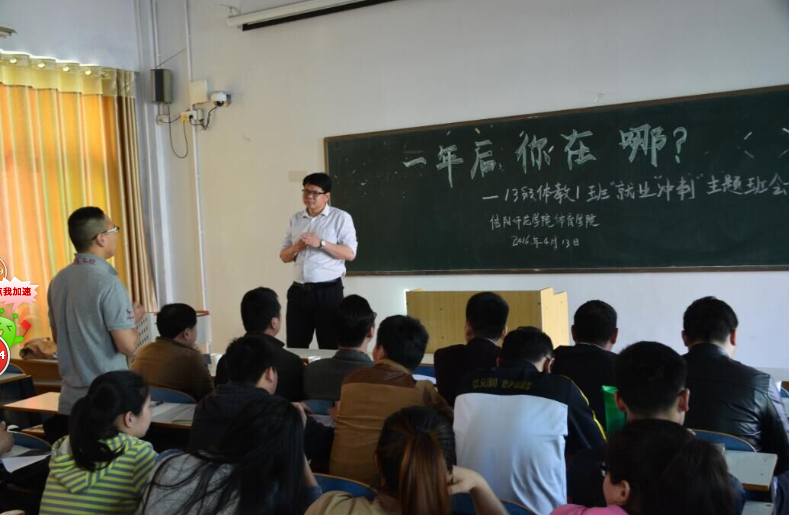 4月13日上午8点,永利集团304am登录辅导员柴九昌老师在教九楼402教室召开“一年后你在哪?‘就业冲刺’主题班会”。指导、交流此次主题班会的领导老师有:信阳师范学院党委宣传部部长丁少峰、学生处处长岳宗德、物电学院党委副书记刘百超、永利集团304am登录党委副书记严彬、物电学院辅导员老师杨勇、外国语学院辅导员老师陈龙、永利集团304am登录辅导员老师鲁枝鑫、永利集团304am登录辅导员老师陈卓。