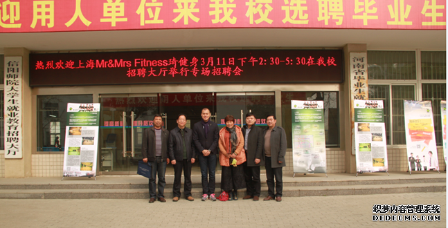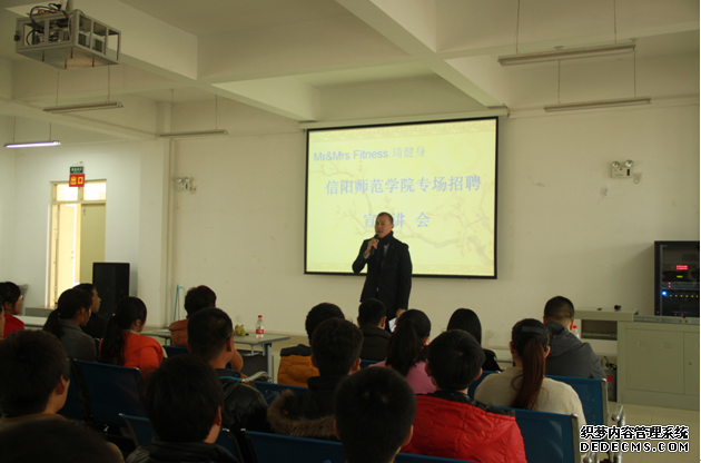 3月11日,在校招就处的支持下,应信阳师范学院永利集团304am登录邀请,上海Mr&Mrs Fitness琦健身有限公司总经理周文译、副总经理蔡锦鸿、人事总监金正琪等一行来到永利官网,在逸夫楼招聘大厅为永利集团304am登录学生举行了一场专场招聘会,吸引了永利集团304am登录2011级190多名毕业生参加,永利集团304am登录院长王小美,副院长梁超勋,总支副书记严彬等老师到现场为同学们答疑解惑;校招生就业处处长刘守义,副处长郭鹏到场为同学们加油助威,并看望了招聘人员,对永利集团304am登录组织这样的招聘会进行了充分肯定。