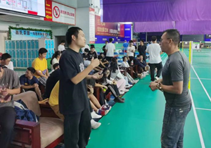 领跑体育负责人为同学们讲解羽毛球赛事的运作、筹备,也介绍了场馆内前台、教练、客销和教务各自的要求和职责,以及工作后的注意事项,同学们对球类场馆的工作性质有了更清楚的了解。随后同学们提出自己感兴趣的问题,比如如何促进羽毛球的发展、少儿网球培养的目标是什么、球馆内工作日和周末的上客量如何等等,负责人均一一进行专业并详细的解答,气氛也从刚开始的拘谨变为畅所欲言。