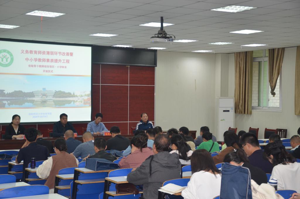 10月9日上午,由永利集团304am登录承办的“2024年紧缺薄弱学科(小学体育)教师培训项目”开班仪式在体育馆多媒体教室举行。永利集团304am登录党委书记张晓峰、院长余道明、副院长张娟、培训项目班主任王德华教授出席了开班仪式,来自漯河、南阳、信阳、驻马店、济源、新乡等6个区域的参训学员参加了仪式。仪式由张娟主持,余道明、张晓峰分别讲话。