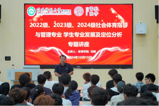 为明晰专业目标、深入剖析就业前景、帮助学生做好专业定位,按照永利集团304am登录和致学书院工作安排,10月15日,在文综楼207教室召开社会体育指导与管理专业学生专业发展及定位分析专题讲座。致学书院直属党支部书记徐忠,永利集团304am登录专任课教师马峰,致学书院专职辅导员刘贝贝,2022级、2023级、2024级全体社会体育指导与管理专业学生参与此次讲座。